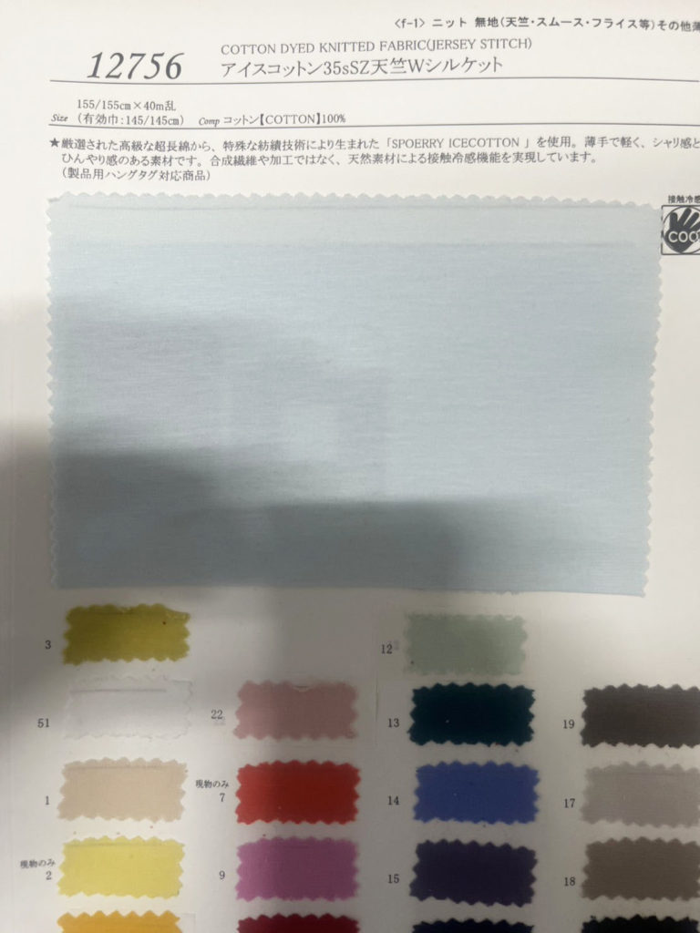 いま、アパレルメーカーさんは秋冬物の展示会の真っ最中ですが、夏に活用できる機能素材をご紹介します。