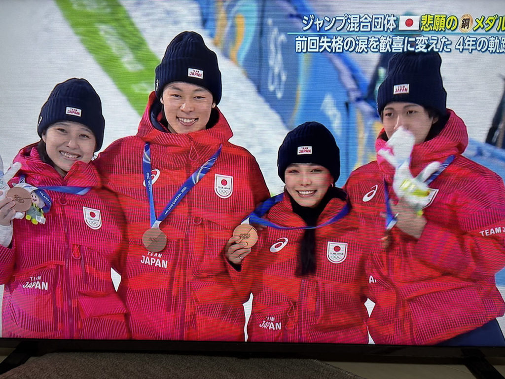 もう一つは、スキージャンプ混合団体で銅メダルを獲得した高梨沙羅選手の姿。